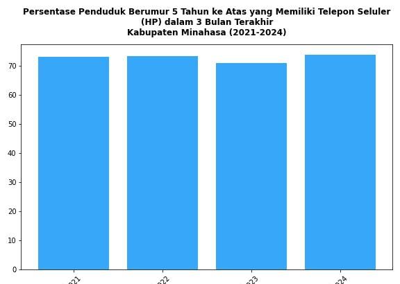 Perkembangan Persentase Penduduk Berumur 5 Tahun ke Atas yang Memiliki Telepon Seluler (HP) di Kabupaten Minahasa Tahun 2021-2024