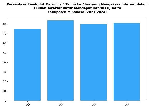 Perkembangan Persentase Penduduk Berumur 5 Tahun ke Atas yang Mengakses Internet di Kabupaten Minahasa Tahun 2021-2024