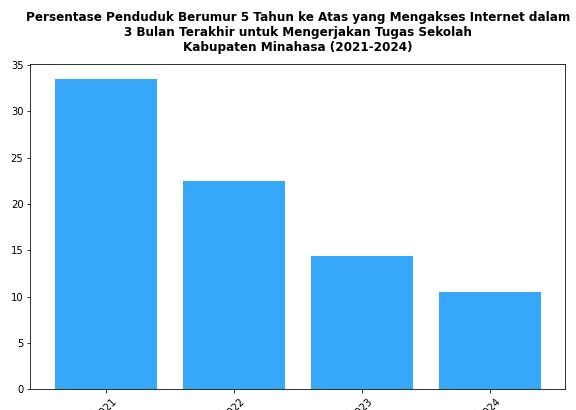 Perkembangan Persentase Penduduk Berumur 5 Tahun ke Atas yang Mengakses Internet dalam 3 Bulan Terakhir untuk Mengerjakan Tugas Sekolah di Kabupaten Minahasa Tahun 2021-2024