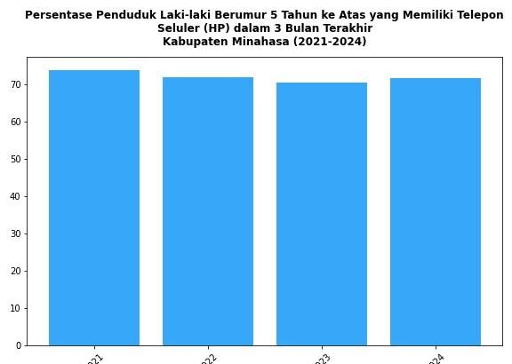 Perkembangan Persentase Penduduk Laki-laki Berumur 5 Tahun ke Atas yang Memiliki Telepon Seluler (HP) di Kabupaten Minahasa Tahun 2021-2024