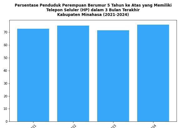 Perkembangan Persentase Penduduk Perempuan Berumur 5 Tahun ke Atas yang Memiliki Telepon Seluler (HP) di Kabupaten Minahasa Tahun 2021-2024