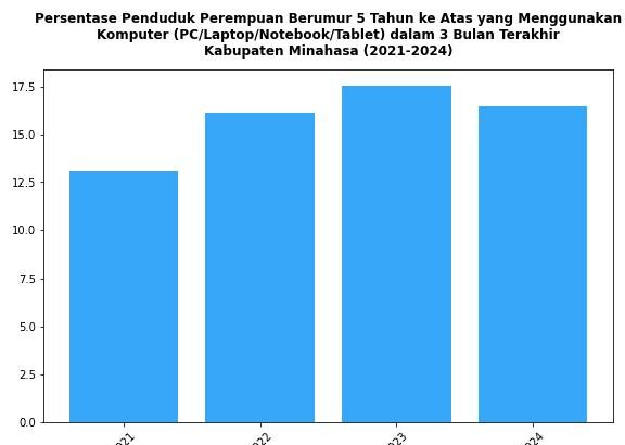 Perkembangan Persentase Penduduk Perempuan Berumur 5 Tahun ke Atas yang Menggunakan Komputer di Kabupaten Minahasa Tahun 2021-2024