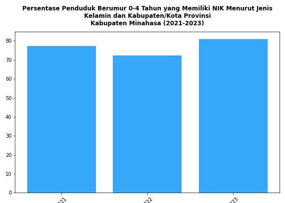 Perkembangan Persentase Penduduk Berumur 0-4 Tahun yang Memiliki NIK di Kabupaten Minahasa Tahun 2021-2023