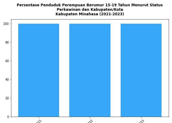 Perkembangan Persentase Penduduk Perempuan Berumur 15-19 Tahun Menurut Status Perkawinan di Kabupaten Minahasa Tahun 2021-2023