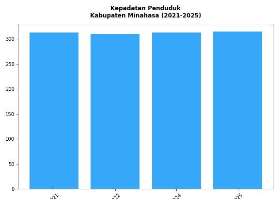 Perkembangan Kepadatan Penduduk Kabupaten Minahasa Tahun 2021-2025