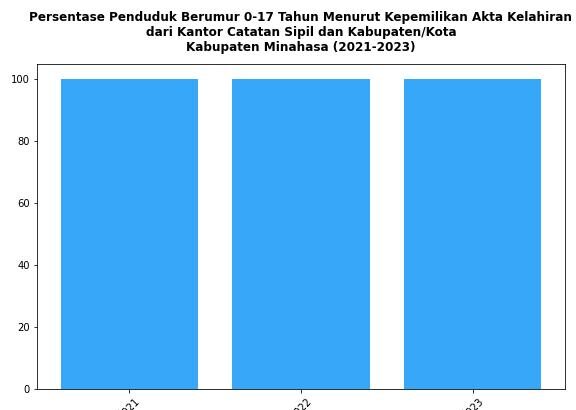 Perkembangan Persentase Penduduk Berumur 0-17 Tahun Menurut Kepemilikan Akta Kelahiran di Kabupaten Minahasa Tahun 2021-2023