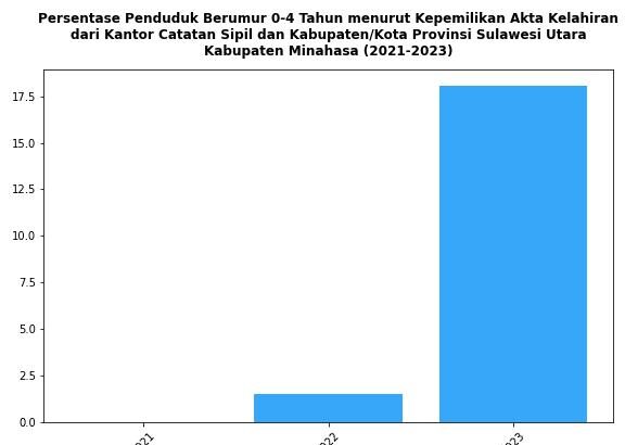 Perkembangan Persentase Penduduk Berumur 0-4 Tahun menurut Kepemilikan Akta Kelahiran di Kabupaten Minahasa Tahun 2021-2023