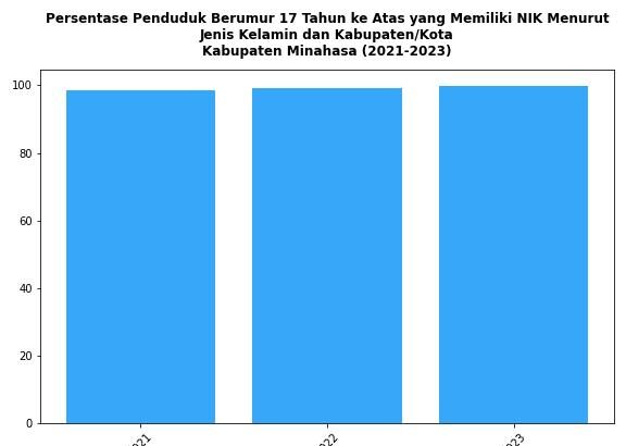 Perkembangan Persentase Penduduk Berumur 5 Tahun ke Atas yang Memiliki NIK di Kabupaten Minahasa Tahun 2021-2023
