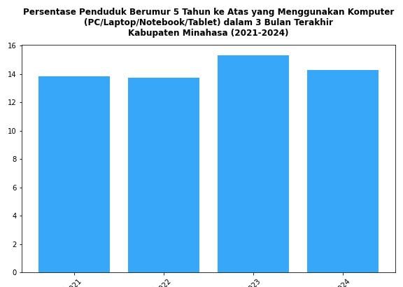 Perkembangan Persentase Penduduk Berumur 5 Tahun ke Atas yang Menggunakan Komputer di Kabupaten Minahasa Tahun 2021-2024