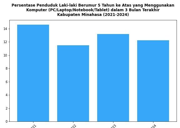 Perkembangan Persentase Penduduk Laki-laki Berumur 5 Tahun ke Atas yang Menggunakan Komputer di Kabupaten Minahasa Tahun 2021-2024
