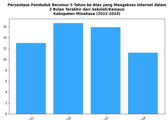 Perkembangan Persentase Penduduk Berumur 5 Tahun ke Atas yang Mengakses Internet dari Sekolah/Kampus di Kabupaten Minahasa Tahun 2021-2024