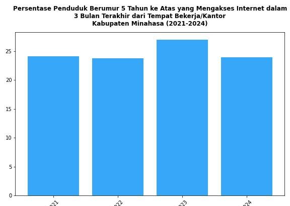 Perkembangan Persentase Penduduk Berumur 5 Tahun ke Atas yang Mengakses Internet dalam 3 Bulan Terakhir dari Tempat Bekerja/Kantor Kabupaten Minahasa Tahun 2021-2024