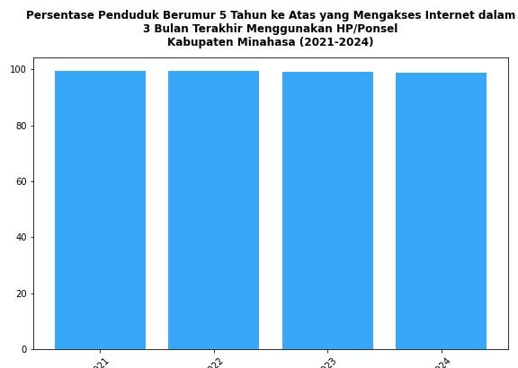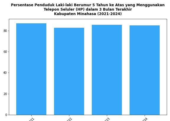 Perkembangan Persentase Penduduk Laki-laki Berumur 5 Tahun ke Atas yang Menggunakan Telepon Seluler (HP) di Kabupaten Minahasa Tahun 2021-2024